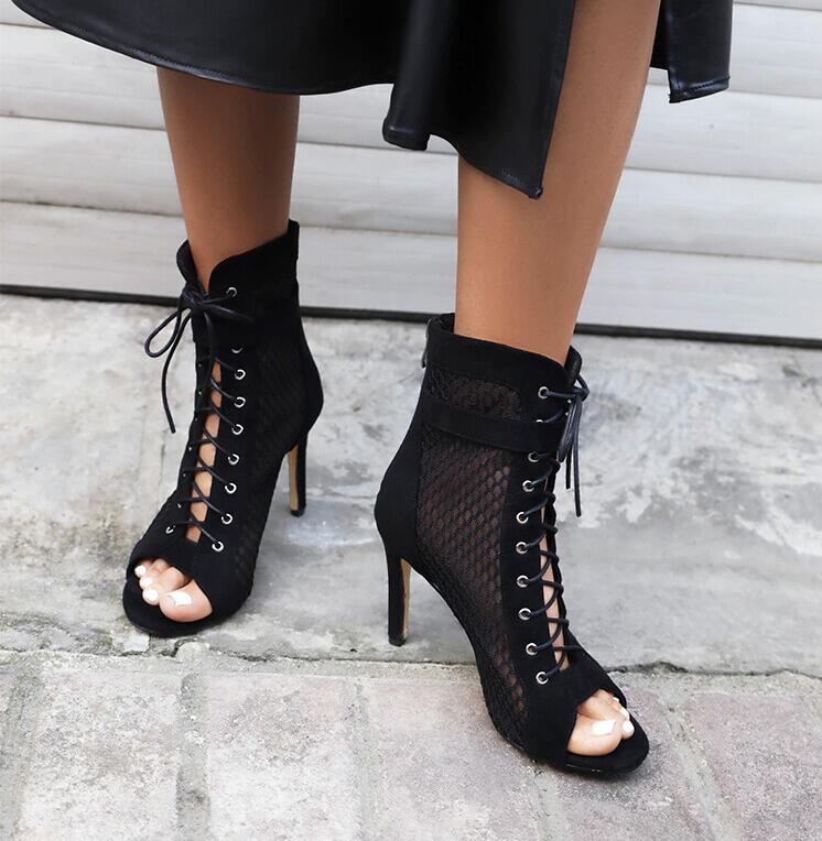 サマーブーツブーツサンダル長脚効果ブーツサンダルレディースショートブーツレースアップ サンダル夏サンダル