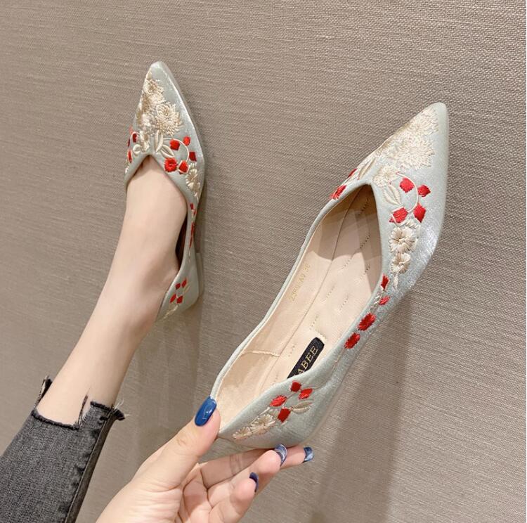 パンプス 痛くない夏 刺繍オフィス ローヒール ぺたんこ バレエシューズフラットパンプス 走れる靴 レディース靴 パンプス