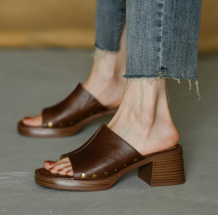 サンダル ミュール レディース ヒール 痛くない 脱げない サンダル スクエアトゥ靴 美脚 ハイヒール