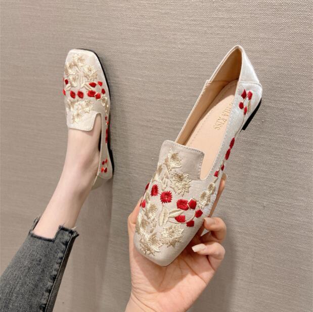 パンプス 痛くない夏 刺繍オフィス ローヒール ぺたんこ バレエシューズフラットパンプス 走れる靴 レディース靴 パンプス