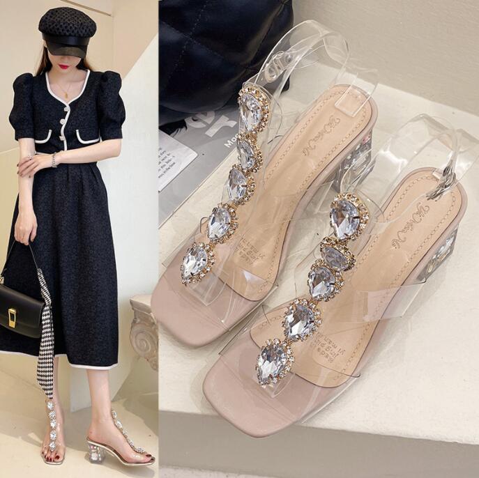 クリアサンダル美脚サンダルアンクルストラップ付きサンダルクリアサンダル キラキラ レディース 7ヒール クリアサンダル 海 リゾート