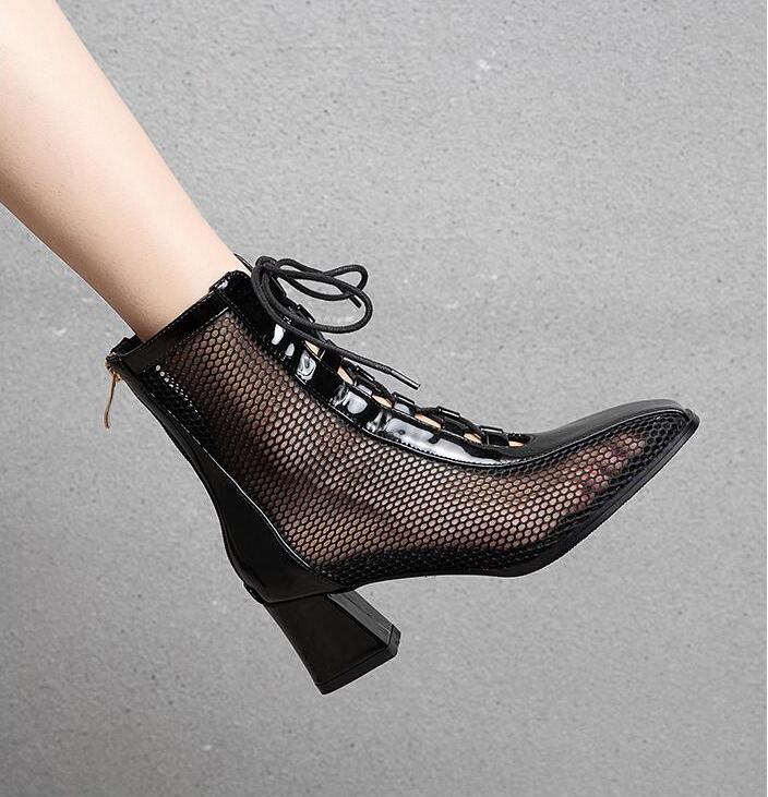 サマーブーツブーツサンダル 編み上げシューズ美脚サンダルショートブーツ太ヒールサンダル夏シースルー靴 レディース靴 サンダル ブーツサンダル