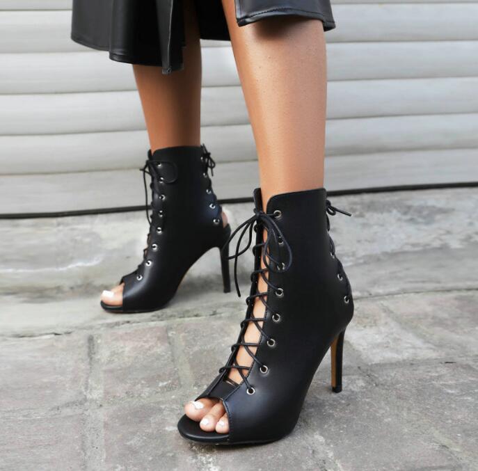サマーブーツブーツサンダルレースアップハイヒールサンダル夏9.5センチヒールレディース靴29センチまで編み上げブーツ