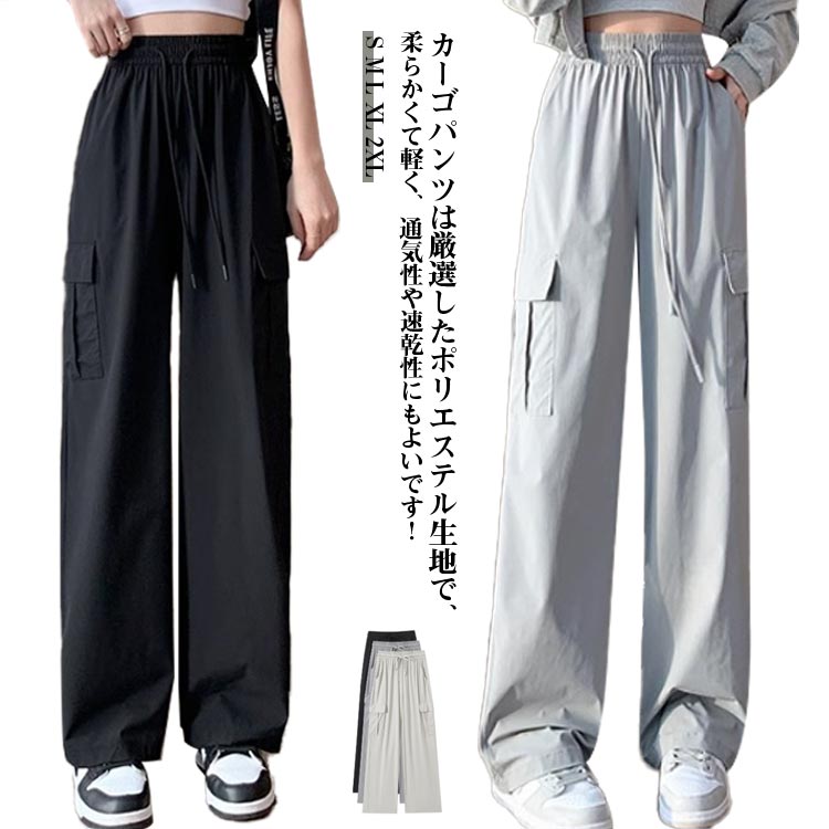 春夏 作業ズボン アイスシルク 無地 パンツ カーゴパンツ 美脚 ワイドパンツ ウエストゴム ストレートパンツ ゆったり レディース uvカット 快適 涼しい ロングパンツ カ ポケット
