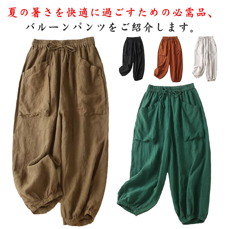 大きいサイズ バルーンパンツ バルーンパンツ 夏 サルエルパンツ 綿麻風 カジュアルパンツ レディース