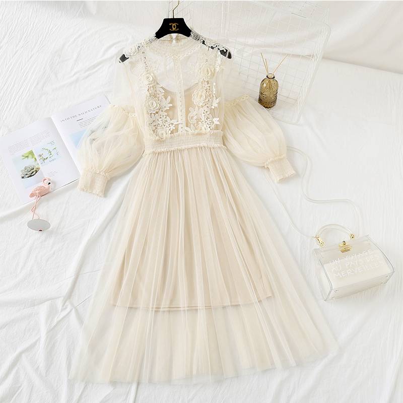 カジュアル おしゃれ きれいめ かわいい 大人 秋 夏 春 重ね着 チュール 刺繍 長袖 2点セット レディース レース