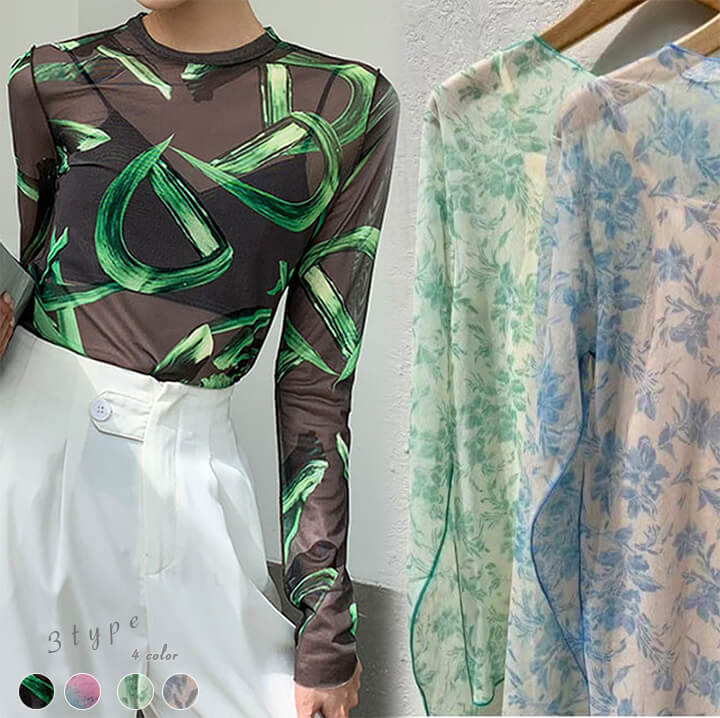 1B223タイプ 花柄 シースル― レディースUV 冷感 長袖 カットソー セクシー トップス ホワイトトップス 透け シアートップス 通勤通学 バーゲン 薄手