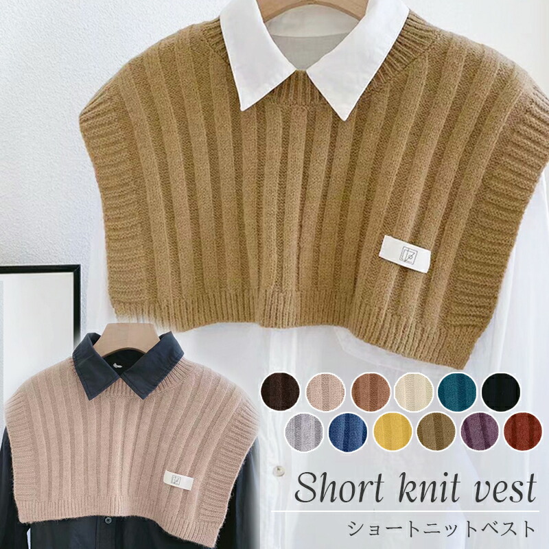 1A16 ニット付け襟 ニットベスト ショート丈 ニット ジレ ベスト 肩周りあったか♪ 豊富なカラーバリエーション 全12色 冷え性 あったかアイテム 付け襟 つけ襟 肩こり対策