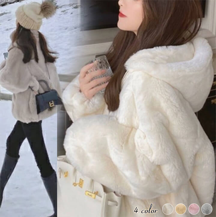 3A39.40 ふわとろ ラビットエコファーコート レディース 2タイプ ハイネック フード付き アウターファーコート 防寒 秋 冬 ふわふわ ゆったり 暖かい ファッション もこもこ