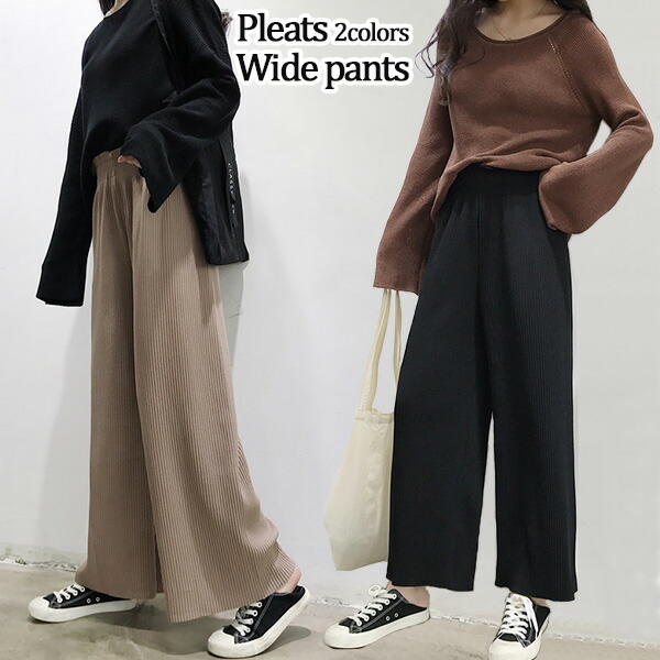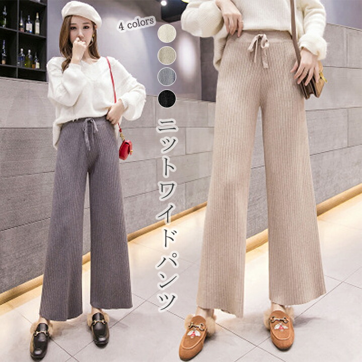 3B12 ニットワイドパンツ レディース リブニットワイド 締め付け感なくストレスフリー ワイドパンツ ニット美脚パン 暖かい スカート パンツ シフォン プリーツパンツ 大きい ボトムス
