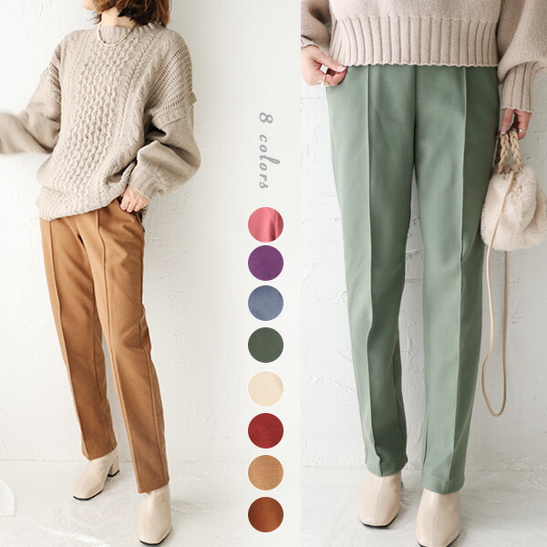 パンツ レディース ライクセンタープレスパン フルレングス ストレート 脚長効果 フォーマル バックゴム ウールライクセンタープレスパンツ 大人 体型カバー オフィスカジュアル ドノバン オフィ 美脚