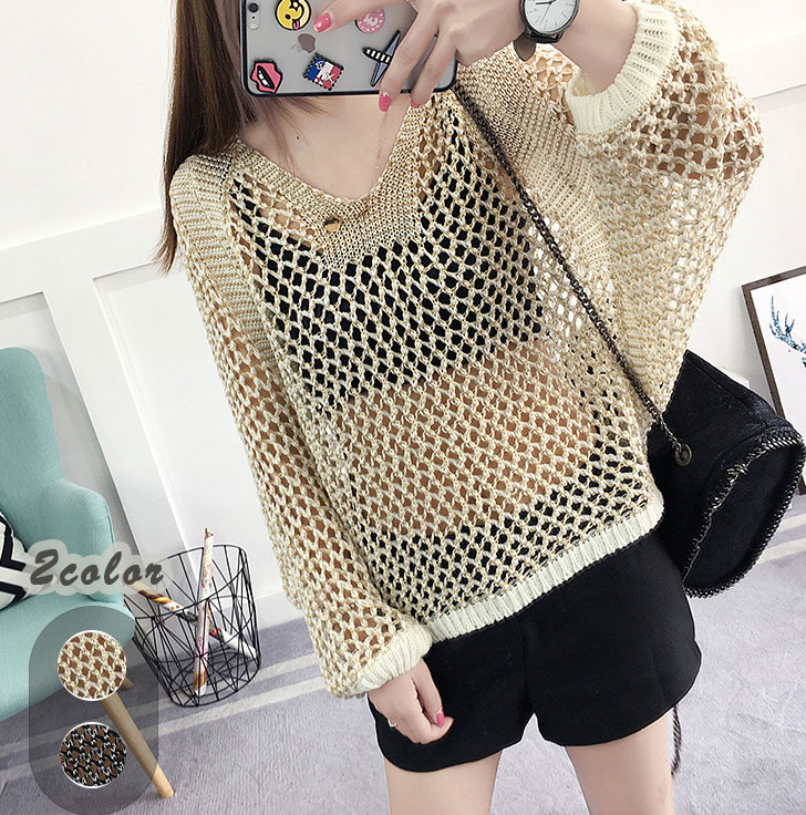 2B4ドルマンニット透かしあみニット あみあみ 体型カバー Vネック セクシー大人スタイル サマーニット 春 秋 冬 秋服 かわいい きれいめ 上品 お洒落