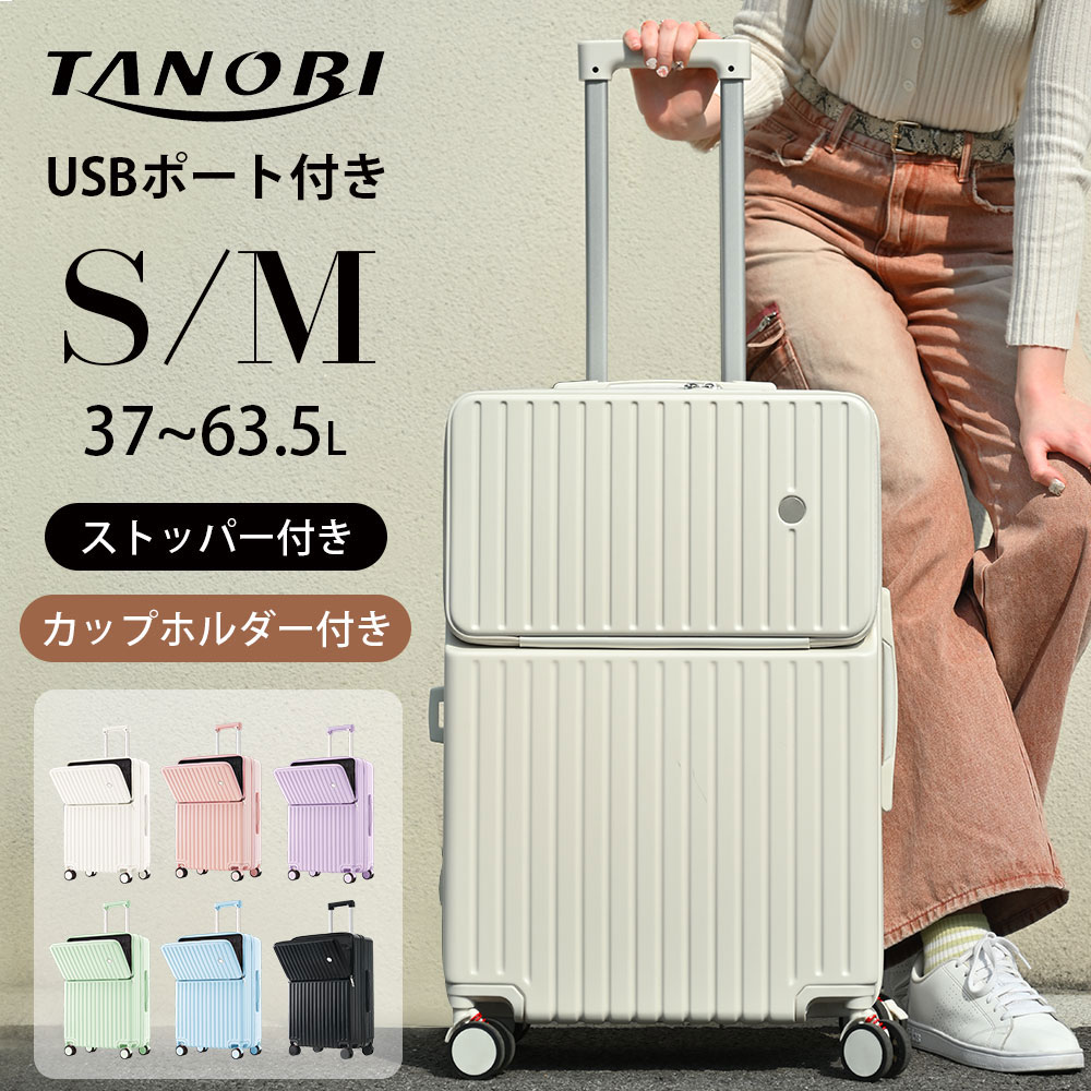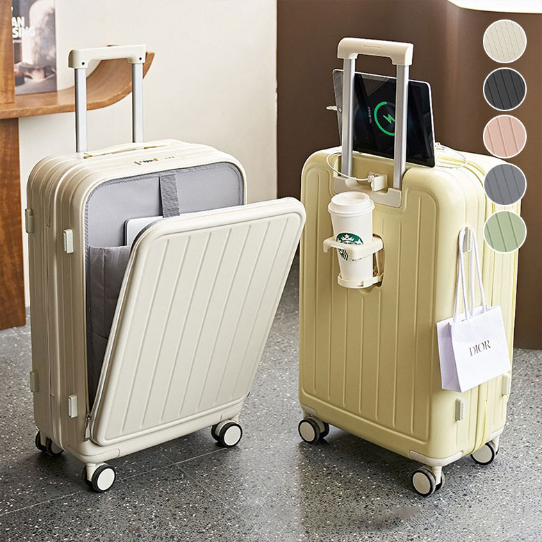 フロントオープン スーツケース レディース 大容量 多機能 多収納 静音 軽音 キャリーバッグ USB充電 軽量 出張 旅行 お泊り会 アウトドア 衝撃耐性 キャリー カート 前開き カップホルダー