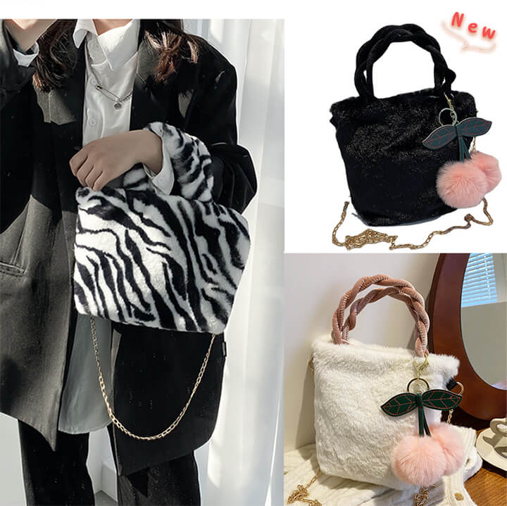 1B18チェーン付きファートートバッグ レディース ふわふわ軽量 手持ちバッグ バック もこもこ カバン 通学 通勤 旅行 可愛い プレゼント人気 雑貨バーゲン デート