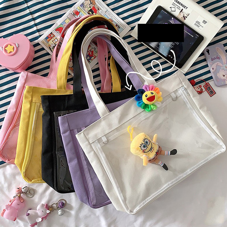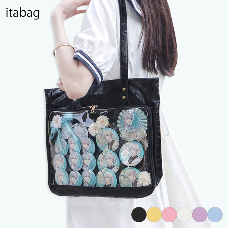 痛バッグ トートバッグ ショルダーバッグ レディース 鞄 バッグ カバン 鞄 オールシーズン 春 夏 秋 冬 秋コーデ 缶バッチ 缶バッジ バッジバッグ 透明窓 シンプル オシャレ