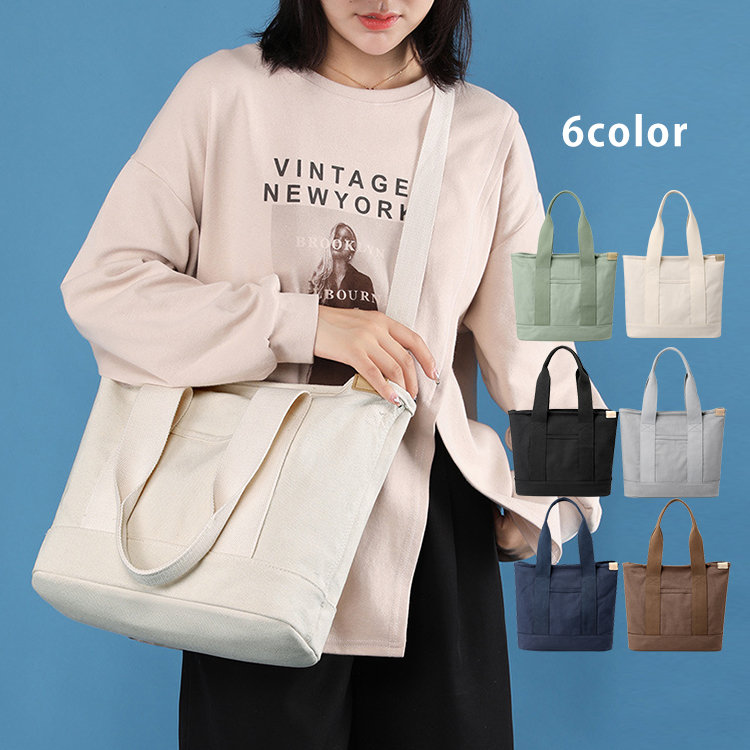 トートバッグ ショルダーバッグ 2 レディース バッグ カバン トート キャンバス生地 帆布 大容量 軽量 ファスナー付き 4 ママバッグ マザーズバッグ ランチバッグ 弁当バッグ 通勤 通学