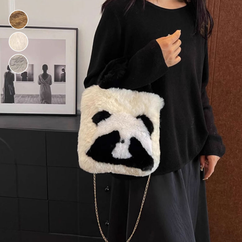 パンダ柄 スクエア トートバッグ ふわふわ もこもこ 小さめ 大人可愛い 大容量