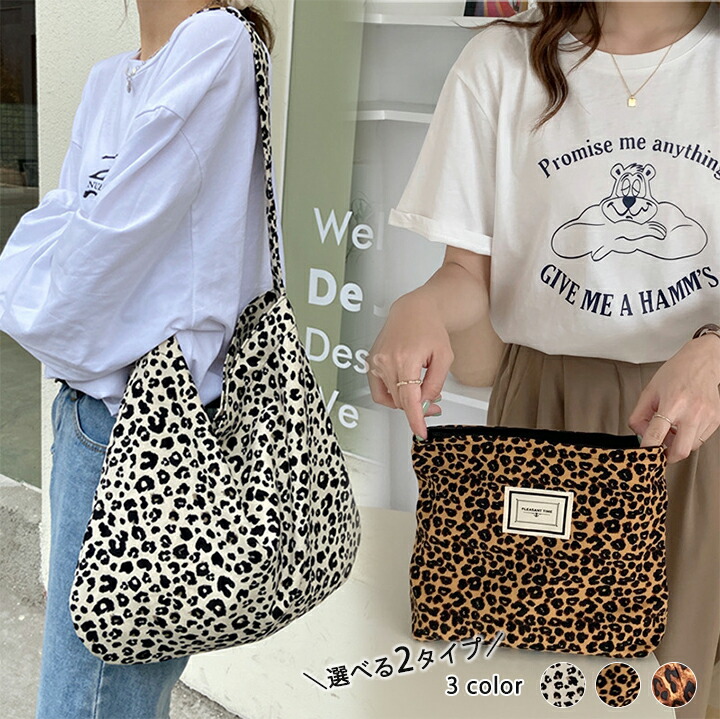 1B15 バッグ ヒョウ柄トートバッグ 選べる2タイプ ショルダーバッグ ポーチ お買い物 大人気 折りたためる 無地バッグ 便利アイテム お買い物バッグ シンプル