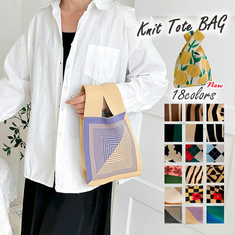 1B8 18種類 ニットバッグ マルシェバック バッグレディース 小さめ ワンハンドルバッグ ミニバック ミニトートバッグ エコバック 韓国 雑貨 手提げ サブバッグ ニットSNS人気 おしゃれ