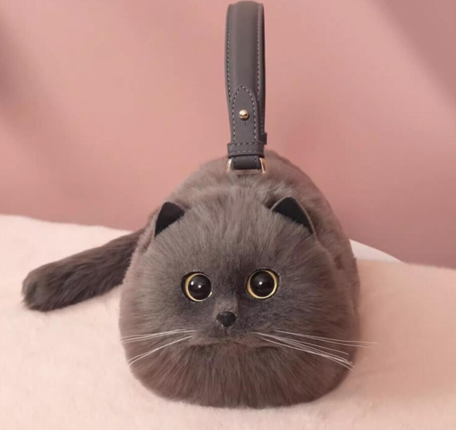 猫ちゃん型バッグ ショルダーバッグ 猫型 バッグ ハンドバッグ 猫型 バッグ レディース 猫 鞄 バッグ ぬいぐるみ ファー リアル ふわふわ 猫好き ミニバッグ