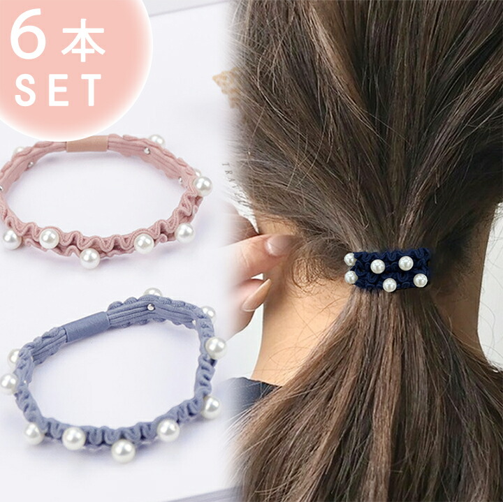 ヘアゴム 5タイプ 6本 セット パール 大人っぽい パールゴム おしゃれ かわいい 大人 シンプル キッズ 子供 女の子 娘 お揃い 可愛い ビジュー 黒 飾り付き 腕 ブレスレット 髪ゴ 飾りなし