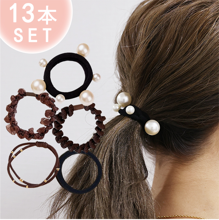 ヘアゴム13本 セット パール 大人っぽい パールゴム おしゃれ かわいい 大人 シンプル キッズ 子供 女の子 子ども 娘 お揃い 可愛い ビジュー 黒 飾り付き 腕 ブレスレット 細い 飾りなし