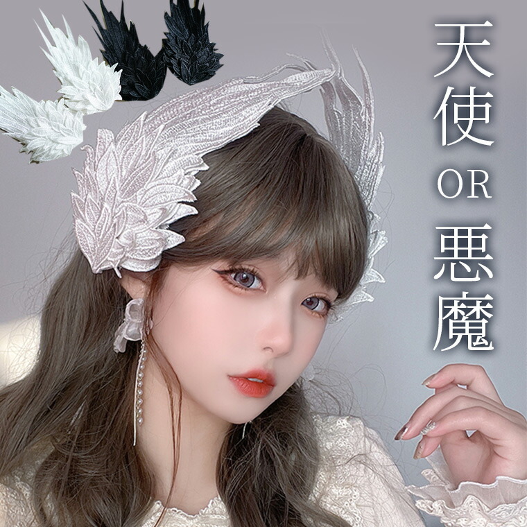 天使にも悪魔にもなれる 羽ヘアピン 1ペア2個セット コスプレ 羽根 フェザー 白 黒 ホワイト ブラック 勇者 エンジェル デビル ツノ キャラクター