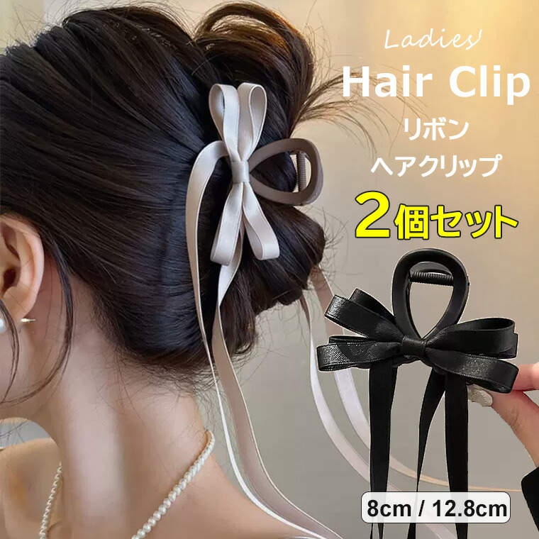 テーマパークコーデにも使える ♪2個セット 2サイズ バンスクリップ ヘアアクセサリー ヘアクリップ ヘアアクセ ハーフアップ シンプル ロング リボン りぼん コスプレ小物 テーマパーク おしゃれ