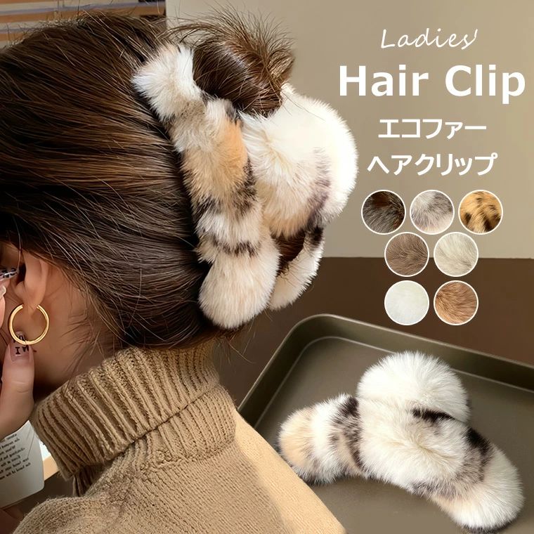 シーズンムードをプラス エコファーヘアクリップ ふわふわ アニマル柄 フェイクファー ヘアクリップ ヘアアクセサリー ハーフアップ まとめ髪 冬 ヘアアクセ 可愛い オフィス 高見え バンスクリップ