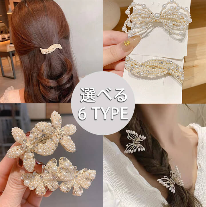 RU-1ヘアアクセサリー 6タイプ ツイスト パール ヘアアクセサリー 結婚式 ヘアピン ヘアクリップ 二次会 パーティー バレッタ ギフト誕生日プレゼント贈り物 フォ アクセサリー