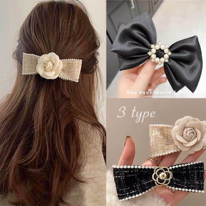 2個セット 特大リボン リボン柄 はさむだけ クラシック ツイード スーツ モチーフ ブランド マーク クリップ 大きめ 高見え セレブ クラシカル ビッグリボン バレッタ ラインストーン ヘアアクセ
