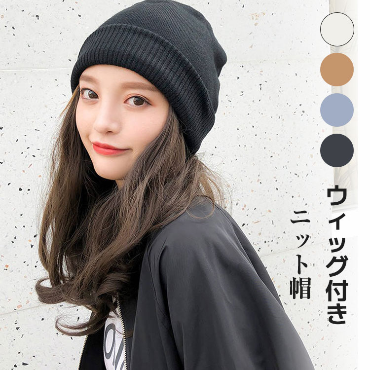 ニット帽 レディース ウィッグ 付き 髪付き 帽子 セミロング ウィッグ帽子一体型 暖かい 医療用 帽子付き つけ毛 ハーフ 髪の毛 コスプレ イメチェン かつら 春秋 冬