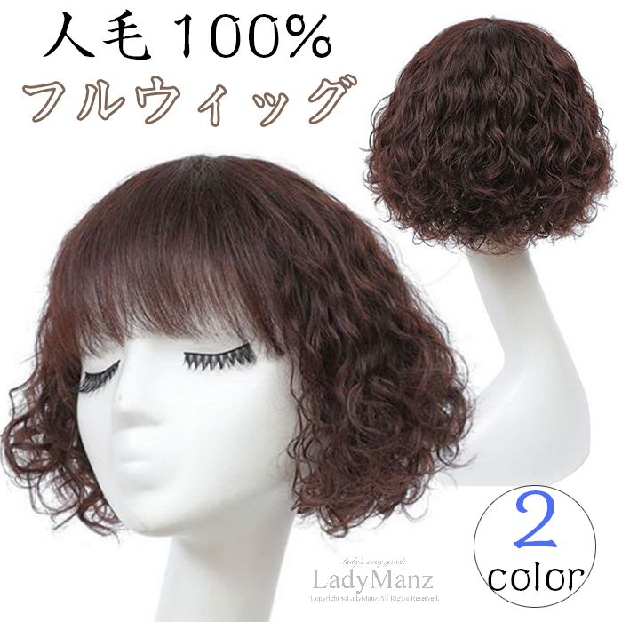 人毛100% ウィッグ フルウイッグ レディース ボブ セミショート カール 総手植え 通気性 ナチュラル