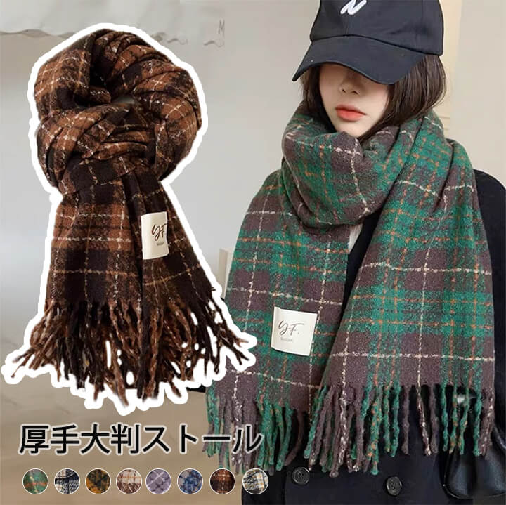 3B32 厚手大判ストール チェック柄 マフラー大判ストール ふんわりプレーンストール マフラー フリンジレディース シンプル 冬 着回し 肌に優しい 膝掛け 小顔 レディースあったかグ パシュミナ風