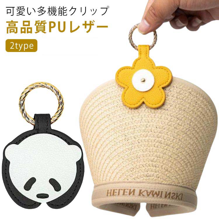 鞄 ギフト パンダ型 皮革 クリップ 帽子 クリップ ハット 花型 一時収納 麦わら ホルダー カバン バッグ アクセサリー アウトドア 用 出張 旅行 マグネットで挟める帽子クリップ