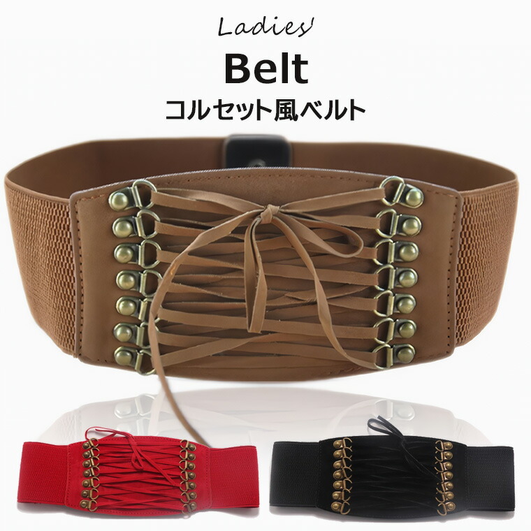 シルエットにメリハリができるので着痩せ効果は絶大 レースアップ 極太ベルト サッシュベルト ウエストマーク 金具 コルセット ベルト 太ベルト ゴムベルト コスプレ 地雷系 コルセット風 ゴシック ロ