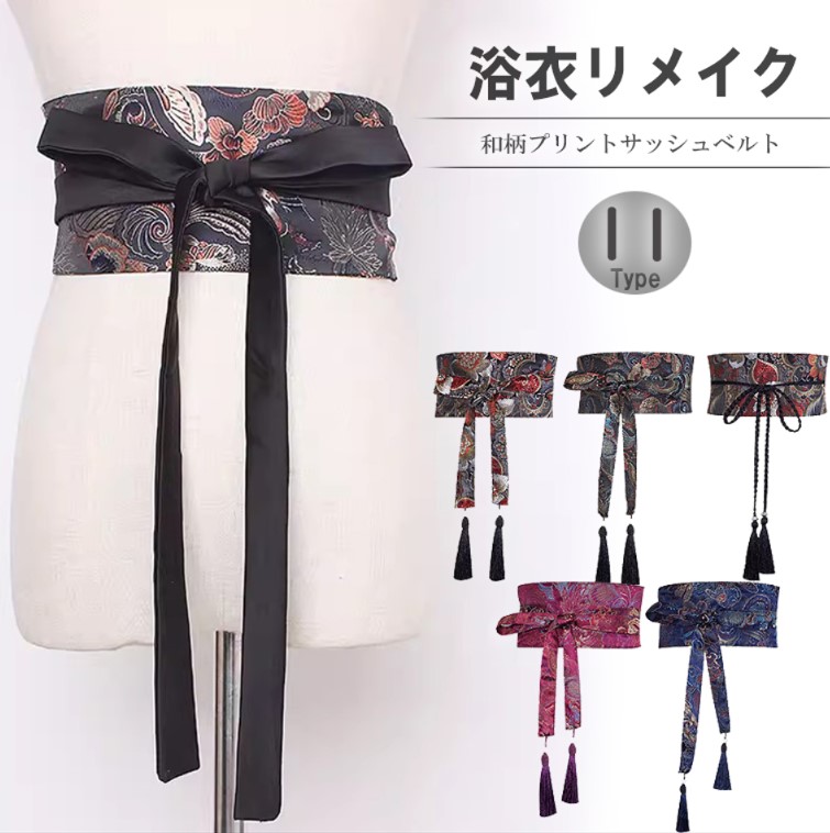 浴衣などでのアレンジを楽しんでもGOOD 11種類展開 サッシュベルト 太ベルト コルセット レトロ ベルト 浴衣着物帯 和柄 鶴柄 着物 帯 ウエストマーク コスプレ