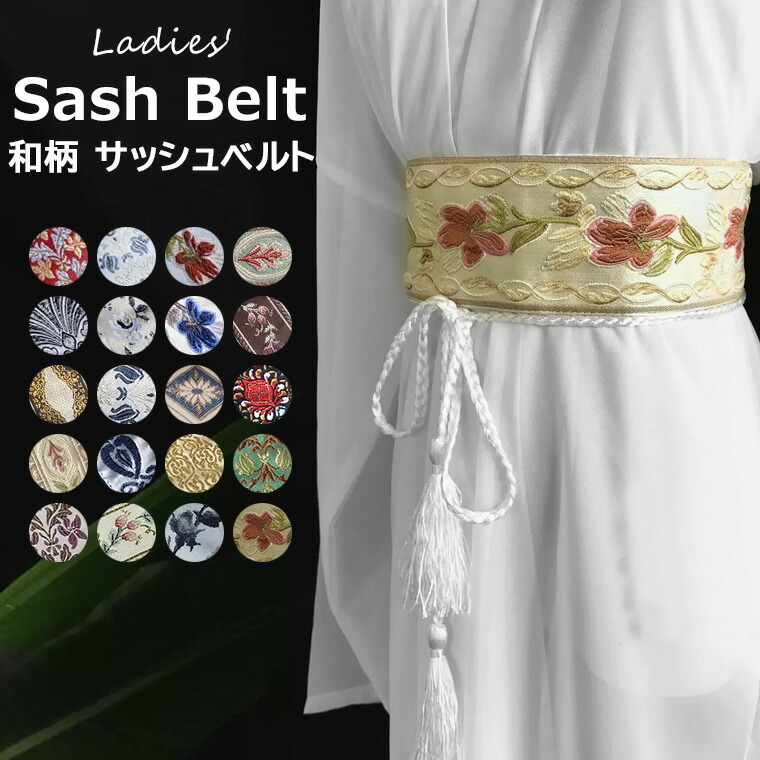 浴衣などでのアレンジを楽しんでもGOOD♪選べる20種類 サッシュベルト 太ベルト コルセット レトロ ベルト 浴衣着物帯 和柄 鶴柄 着物 帯 ウエストマーク コスプレ 帯締め風