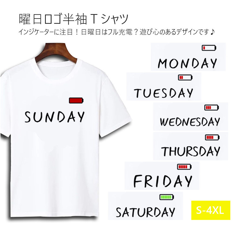 メンズ 1week Tシャツ 曜日ロゴ 遊び心のある 一週間 半袖 白T 男女兼用メンズファッション トップス カットソー