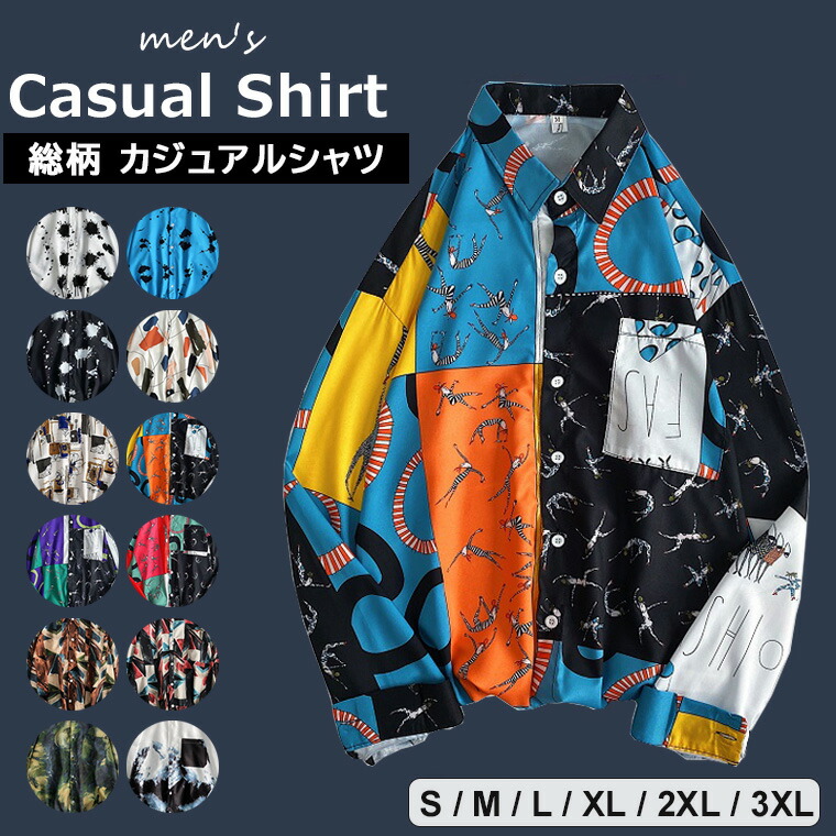 豊富な柄バリエーションが魅力的 メンズ 長袖シャツ オシャレ 夏物 シャツ ゆったり 総柄 ストリート系 かっこいい 部屋着 カジュアルシャツ トップス メンズライク ユニセックス