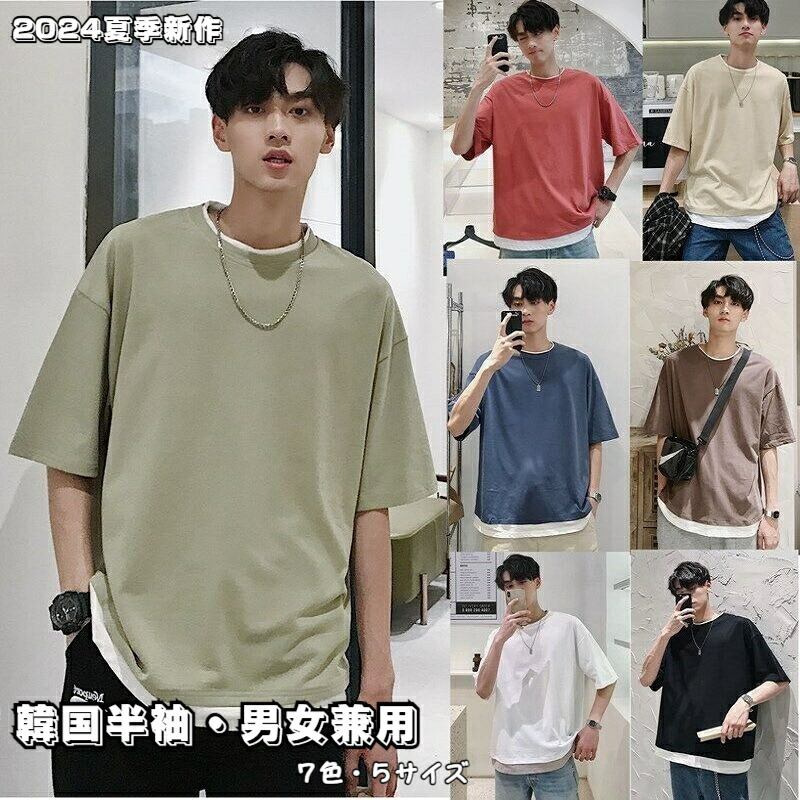 半袖 メンズ 夏服 tシャツ 重ね着風 大きいサイズ ストリート系 プルオーバー 人気 カットソー 配色切替 トップス かっこいい 春 夏 オシャレ ティーシャツ おしゃれ カジュアル サマーシャツ
