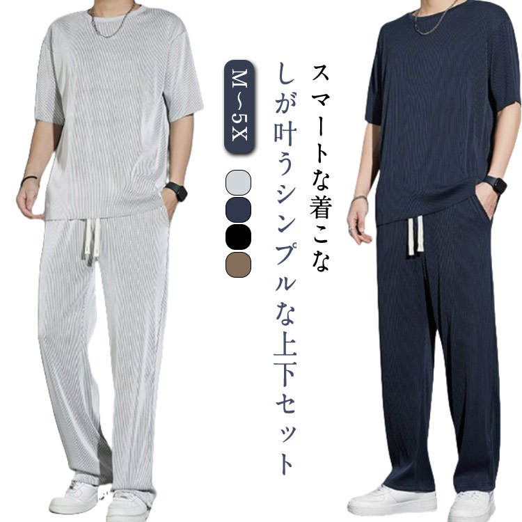 ~5 メンズ 上下セット 半袖 涼しい 薄手 リラックスウエア 部屋着