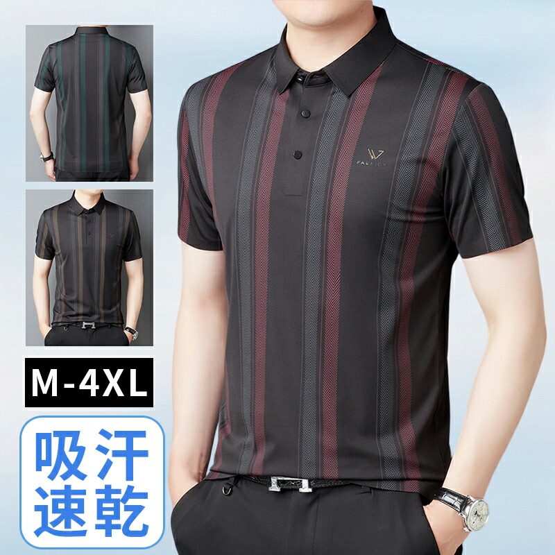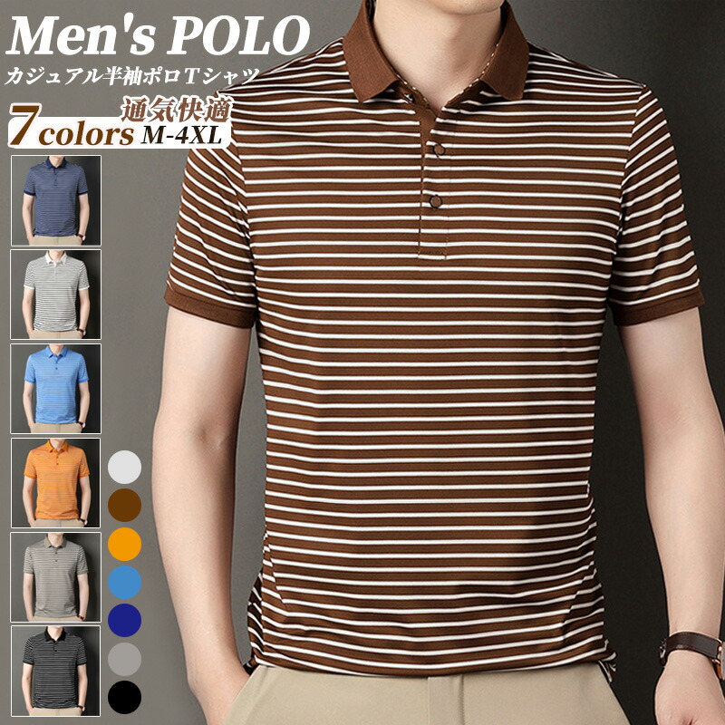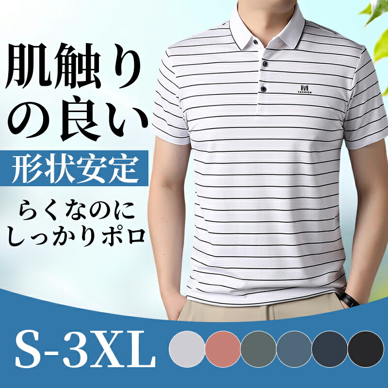 ポロシャツ メンズ 半袖 ストライプ ゴルフシャツ 透けない カジュアル ビジネス 紳士 おしゃれ 夏用 ゴルフウェア オフィス 大きいサイズ メンズファッション polo 通勤 ゆったり tシャツ