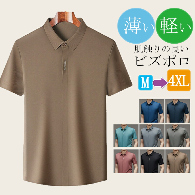 【送料無料】半袖ポロシャツ メンズ ボタン 大きいサイズ 暑さ対策 ビズポロ 折り襟 トップス 無地 通勤 快適 吸汗速乾 涼しい 40代 50代 60代 70代 大人 男性 8色 ~4