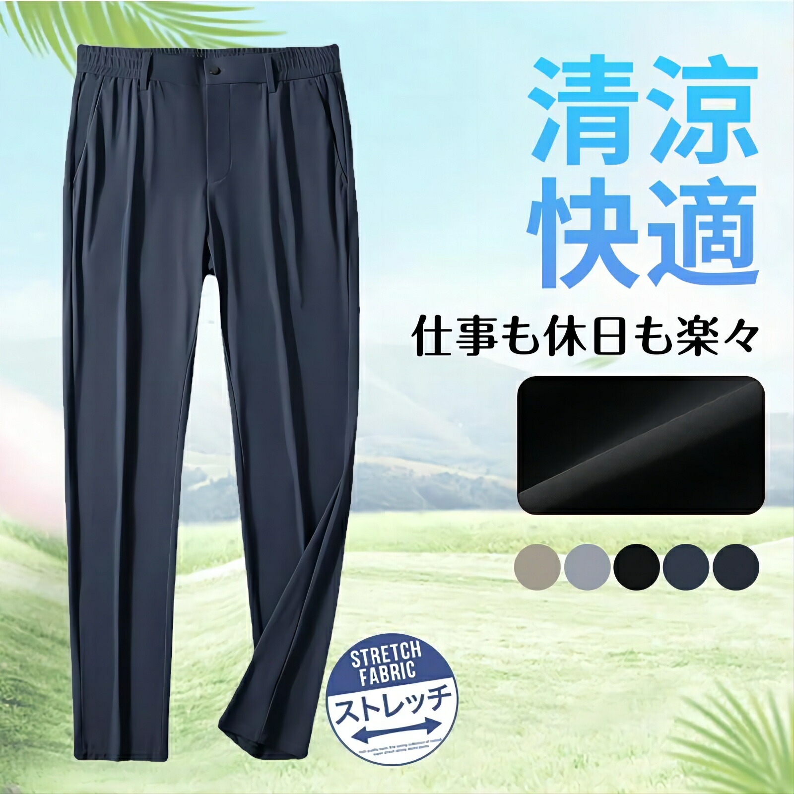 ストレッチパンツ 細身 ストレッチ 接触冷感 夏 ビジネス ビジカジ カジュアル オフィスカジュアル ゴルフ ズボン チノパン メンズ スリムパンツ ボトムス アイスシルクパンツ テーパードパンツ チ