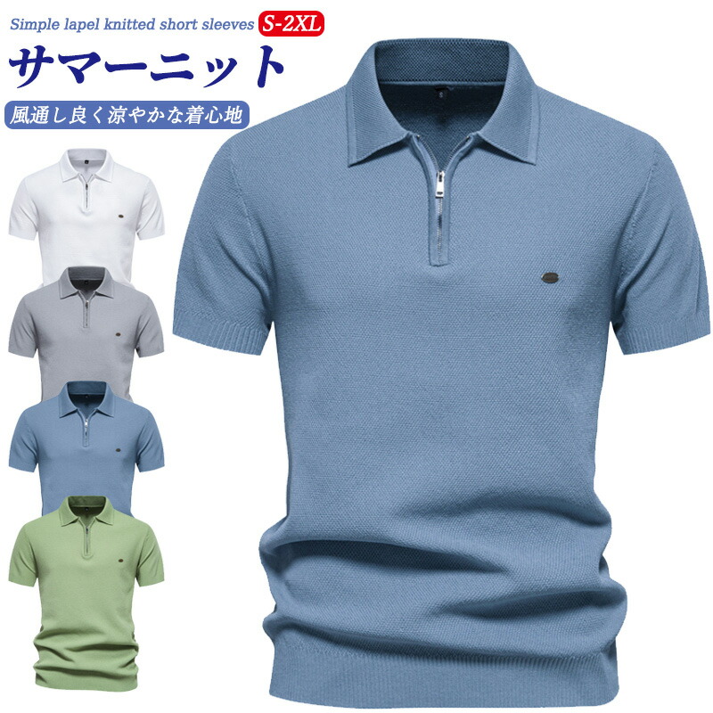 半袖 ニット ポロ メンズ 無地 シンプル 大きいサイズ ニットシャツ ビジネス カジュアル トップス おしゃれ サマーニット 吸汗速乾 Tシャツ クールビズ カットソー ストレッチ メンズファッショ