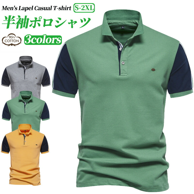【送料無料】メンズ ポロシャツ ボタン スリム 色 デザイン トレーニング ランニング 紳士 運動 スクール スリム ゆったり 部屋着 カットソー グレー グリーン イエロー