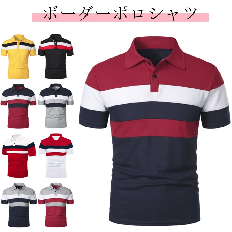 ボーダー柄 仕事 メンズ ゴルフトップス 速乾 紳士服 半袖 ポロシャツ 薄手 蒸れない トップス 父の日 春夏 ビズポロ 吸汗 無地 シンプル 大きいサイズ 通勤 ビジネス おしゃ 快適