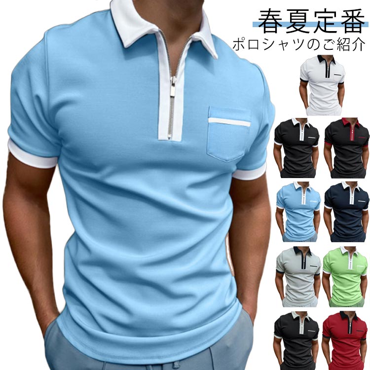 カジュアル ゴルフシャツ ゴルフウェア 柔らかい POLOシャツ tシャツ 半袖 ハーフジップ 切り替え メンズ ビジネス 部屋着 おしゃれ フォーマル プレゼント ポロシャ オフィス