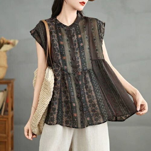 フレンチシャツ タンクトップ ノースリーブブラウス 薄手 レディース 春 夏 袖なし